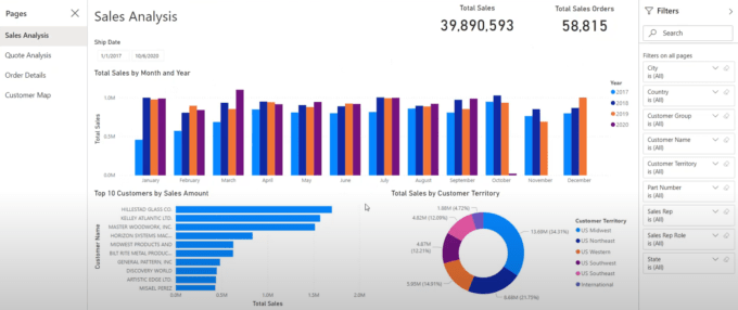 Power BI for Epicor Template: Sales Review. This template focuses on pulling data around sales orders and quotes from Epicor. It highlights: